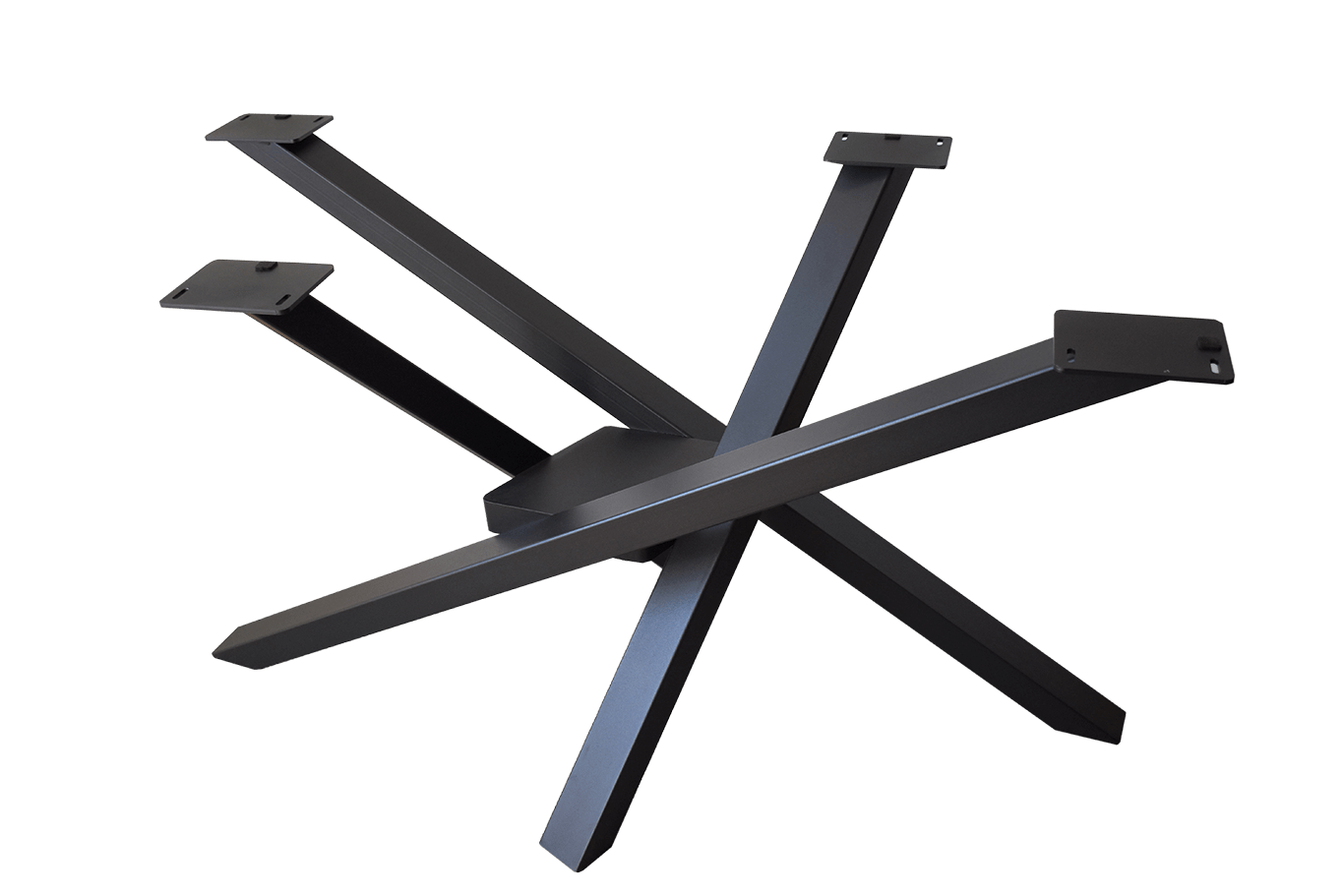 Kovinsko centralno podnožje za jedilno mizo, laserski razrez, kvalitetno varjeno in mat črno prašno barvano.