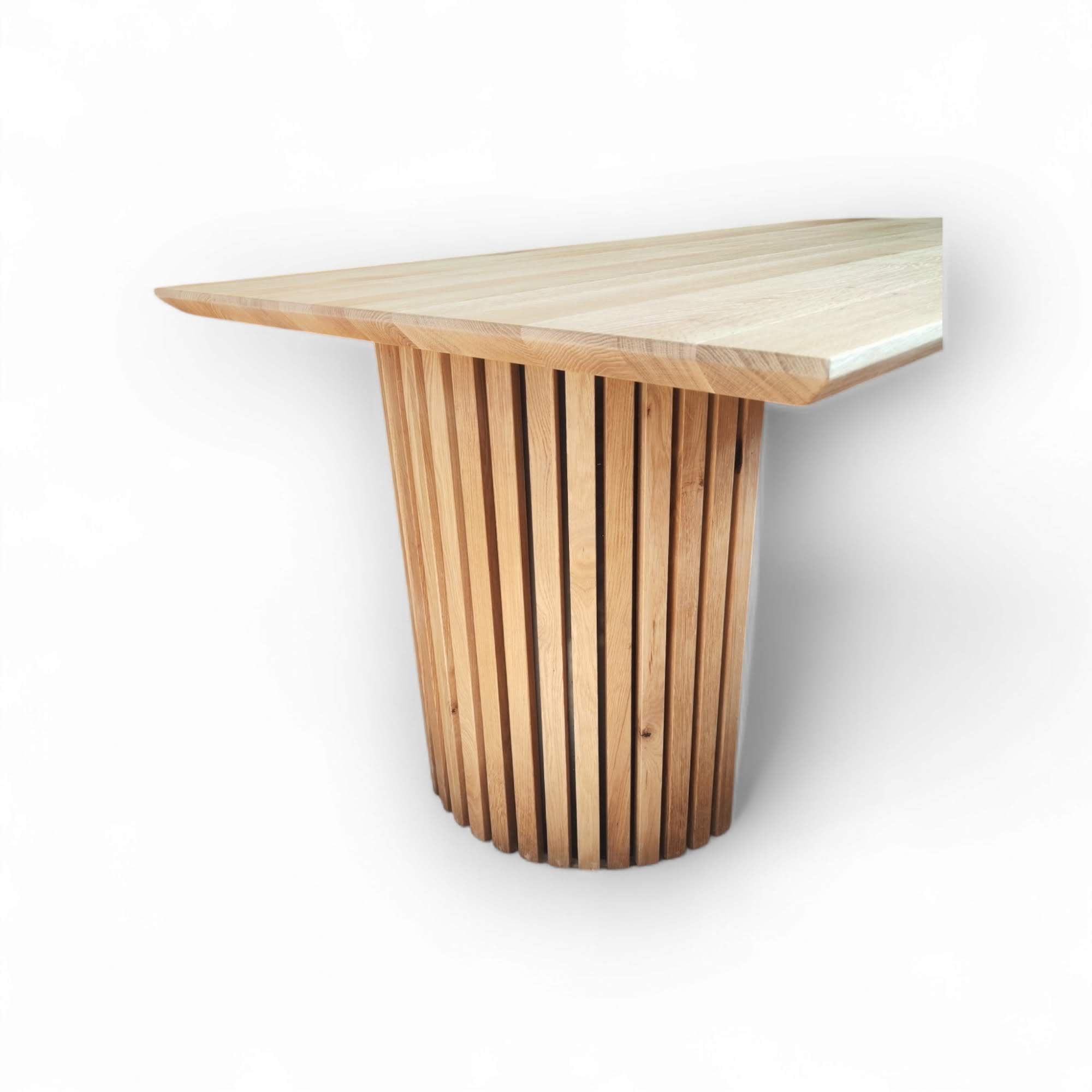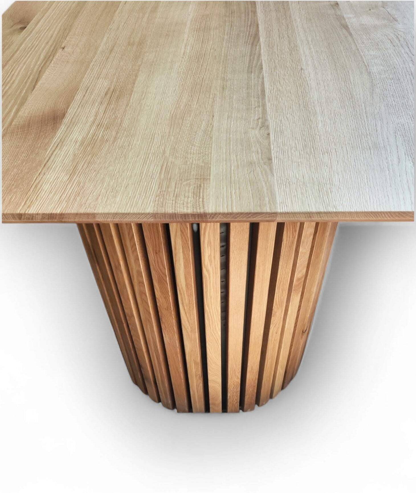 Masivno leseno centralno podnožje za jedilno mizo v izgledu lesenih panelov. Lahko je polkrožno ali pa okroglo.